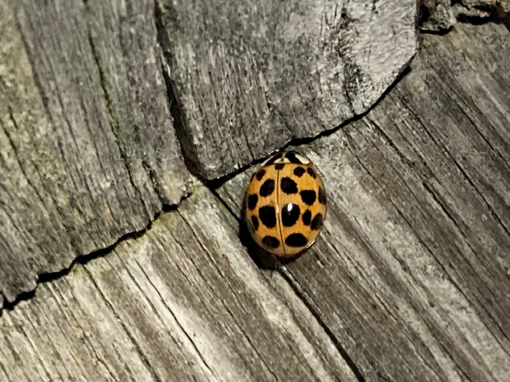 I read that different types of bugs come out at different times of the night. Silk moths, the big charismatic moth group that includes lunas, are active right around midnight. Smaller moths and insects show up in the earlier hours. At Monhegan I even had a ladybug appear! I would have assumed that ladybugs would sleep through the night. Not this one, though.