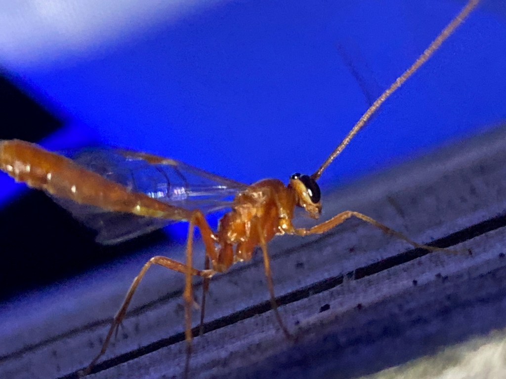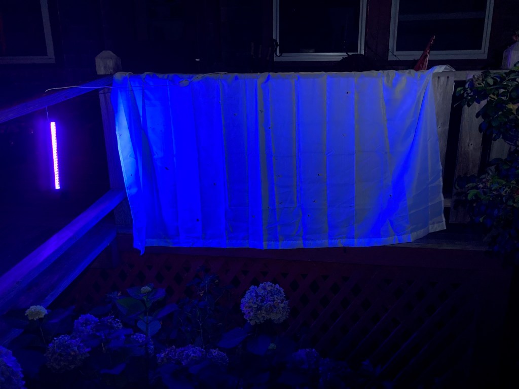 I draped a white shower curtain liner over our cabin’s porch railing and aimed my black light at it from the side. Although I didn’t stay up long enough to see whether the island hosted any big silkmoths, I did get some pretty neat visitors. A burying beetle was one favorite. Also numerous small moths, beetles, etc. I didn’t have energy to set an alarm to get up and check at midnight, rather than take everything down after a couple hours. So I can’t say I came anywhere close to grasping the entirety of Monhegan’s nocturnal insect population. But as far as testing my equipment, it was still worthwhile. Perhaps next summer I’ll impose on a friend with a back yard to host an all-night mothing party.
