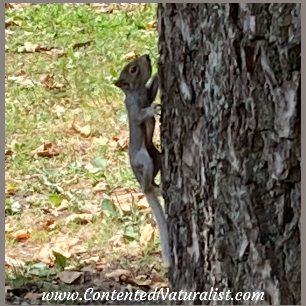 We hoped that once visitors had left the park at the end of the day, mama squirrel would return to take care of the little ones. Years ago I watched a squirrel teach her babies (a little older than these) how to climb a brick wall, alternately calling them from above and nosing at them from below. So I knew that usually squirrels take an active role in developing their babies’ skills.